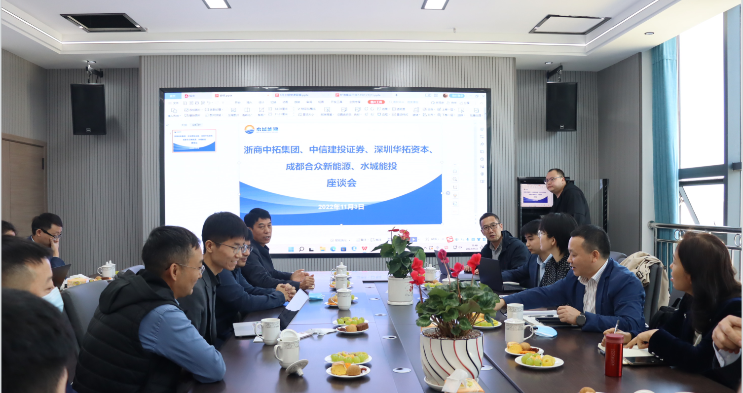 2022年11月3日,浙商中拓集團(tuán)股份有限公司、中信建設(shè)證券股份有限公司、深圳華拓資本投資管理有限公司、成都合眾有限公司、六盤(pán)水市水城區(qū)能投實(shí)業(yè)(集團(tuán))有限公司在水城能源大廈17樓會(huì)議室召開(kāi)座談會(huì)。