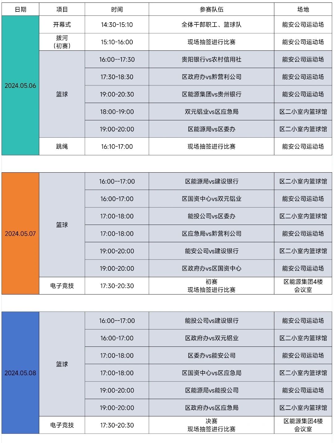 本屆職工運(yùn)動(dòng)會(huì)舉辦時(shí)間為5月6日-11日,比賽設(shè)有籃球、拔河、羽毛球、兵兵球、跳繩和電子競(jìng)技等多個(gè)項(xiàng)目,不僅有展現(xiàn)水平的個(gè)人項(xiàng)目,還有考驗(yàn)協(xié)作的團(tuán)體競(jìng)賽。我們期待每一位職工都能積極參與其中,在運(yùn)動(dòng)中尋找樂趣,在競(jìng)爭(zhēng)中超越自我。